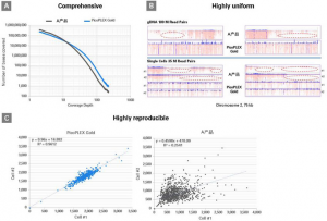 圖2. PicoPLEX Gold的主要特點:高覆蓋度,高均勻性,和高重現(xiàn)性 (與A產品技術相比)。