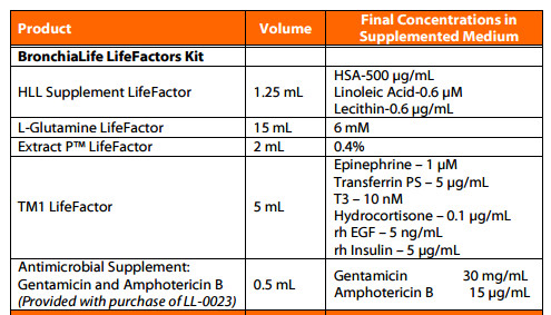lifeline ?LL-0023 ??BronchiaLife Complete Kit氣道上皮細(xì)胞培養(yǎng)基完整試劑盒