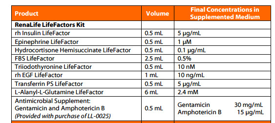 Lifeline LL-0025 RenaLife ? Epithelial Medium Complete Kit 腎臟上皮細(xì)胞培養(yǎng)基套裝
