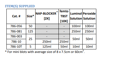 此外,femtoLUCENT?PLUS-HRP也以試劑盒形式提供,包含我們的非動(dòng)物蛋白阻斷劑(NAP-BLOCKER?)和洗滌緩沖液(femto-TBST?