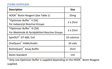 HOOK?-Biotin-PDA標記試劑盒設(shè)計用于1-10mg蛋白在1ml緩沖液中偶聯(lián),適用于10次偶聯(lián)。