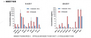 細胞因子檢測結果顯示,與商業(yè)外周血血清(GemCell)相比,臍帶血血清在多種生 長因子和趨化因子上的濃度均更高。